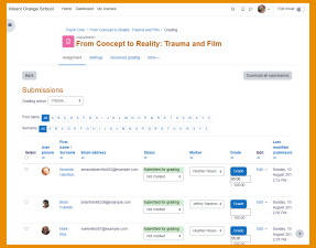 Asigne convenientemente a diferentes personas para que califiquen tareas, gestione la moderación de calificaciones y controle cuando se liberan las calificaciones a los alumnos individuales.