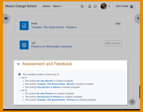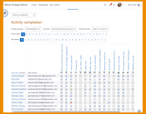 Los educadores y los educandos pueden monitorear el progreso y el grado de finalización con un conjunto de opciones para monitoreo de actividades individuales o recursos, y también a nivel del curso.