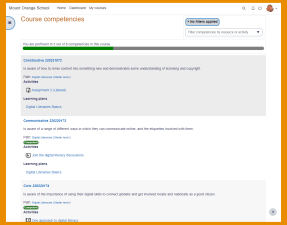 Configure competencias son planes de aprendizaje personales entre cursos y actividades.