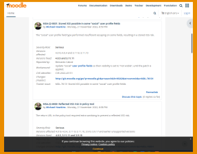 Moodle es actualizado regularmente con los últimos parches de seguridad, para ayudar a asegurar que su sitio Moodle sea seguro.