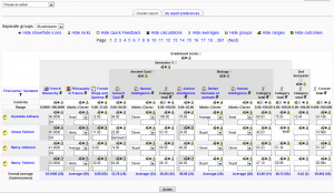 La página de informe de las calificaciones es la vista principal del profesorado para el nuevo libro de calificaciones en Moodle 1.9. Para versiones anteriores a la 1.9, mirar aquí.