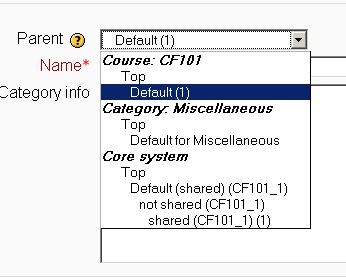 - Tenga en cuenta que puede elegir hacer de su categoría una categoría de 'nivel superior' en cualquier contexto (consulte Contextos de pregunta) que esté disponible para usted. O puede optar por agregar su categoría como una subcategoría de otra categoría en el mismo contexto