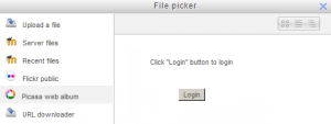 - From the file picker, click on the Picasa web album link and a prompt to log in will appear.