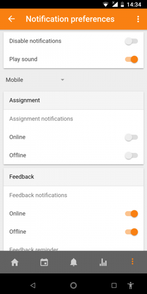 3. Mueva el deslizador para activar notificaciones para tarea, retroalimentación, for, etc, conforme se requiera