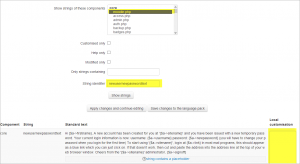 Esto hará que la interfase de Moodle se muestre en el idioma especificado. (Vea Paquetes de idioma).