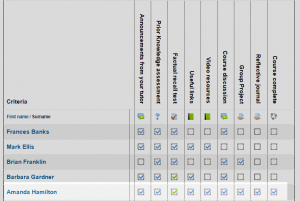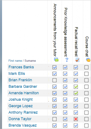 | Existe documentación diferente para varias versiones de Moodle: Esta página es para Moodle 3.1; si desea ver la documentación anterior vaya a 28/Monitoreo del progreso |