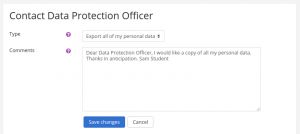 El plugin de Privacidad de datos forma parte del conjunto de características de privacidad de Moodle y ayudará a los sitios para que cumplan con GDPR. Está incluido como estandar a partir de Moodle 3.5 y está disponible como un plugin descargable por separado para Moodle 3.3.6 y 3.4.3.
