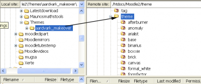 - Usando su programa para FTP, suba esta carpeta a la carpeta /theme de su servidor Moodle