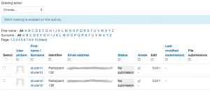 - Esto le permite a un usuario el ver identidades de estudiantes y número de participantes (a partir de Moodle 2.9.5) cuando se habilitan envíos anónimos para una Actividad de tarea. A partir de Moodle 3.0.3 también se muestran el número de participantes, lo que permite hacer referencias cruzadas.