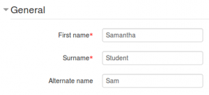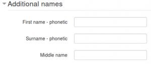 De Moodle 2.6 en adelante existen campos de nombre adicionales. Estos campos permiten que se muestre más detalle acerca del usuario. Los campos de nombre adicionales que pueden usarse son: