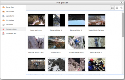 - Los videos de Youtube pueden buscarse e incrustarse en dondequiera que haya un Editor HTML (TinyMCE o Atto) , como por ejemplo, en una Etiqueta o una Página.