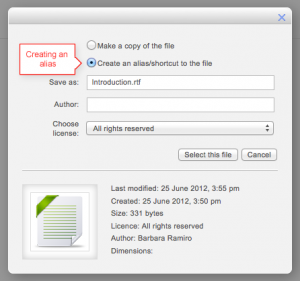 - If an alias is created, then when the original file is updated, it will change in all instances of the alias. So a teacher might add course notes to their private files for example, and then add them into a number of courses. When the teacher makes an alteration in the file in their private files, this alteration will be reflected in all instances of the course notes.