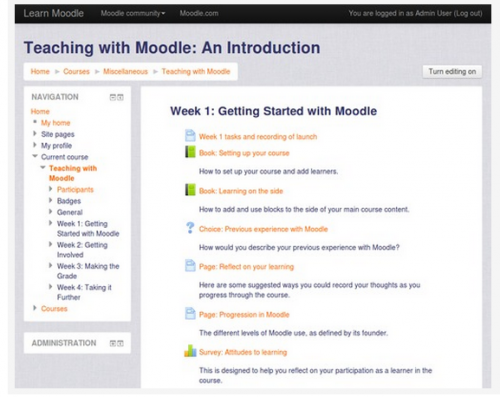 | Nota: A partir de Moodle 3.2, el sitio demostrativo de Mount Orange usa un tema Boost personalizado |