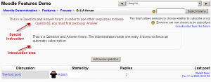 Lo que puede verse bajo el texto de introducción al foro depende de cuál de las tres opciones haya seleccionado en el campo Tipo de foro en crear un foro.