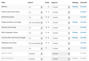 - Si se habilita, el Filtro MathJax debería de estar hasta arriba (primero en aplicarse).