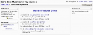 De Moodle 1.7 en adelante, un administrador puede elegir que bloques aparecen en la página My Moodle ej: