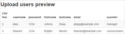 Cuando se aplican ciertos Roles personalizados en el Contexto del sistema, es posible subir usuarios a ese rol en forma masiva al añadir el campo sysrole1 (etc) a un archivo CSV.