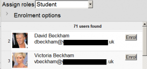 - Haga clic en el botón para "Inscribir usuarios" y haga clic en aquellos usuarios que desee inscribir
