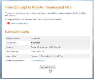- Students click the assignment link and click “Add submission” (1)