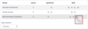 - Asegúrese de que esté habilitada la Auto-inscripción (que tenga el ojo abierto) y entonces, elija el ícono para editar a la derecha: