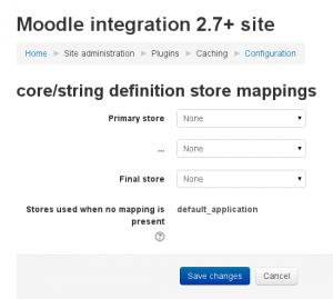 Since Moodle 2.4, Moodle has provided a caching plugin framework to give administrators the ability to control where Moodle stores cached data. For most Moodle sites the default configuration should be sufficient and it is not necessary to change the configuration. For larger Moodle sites with multiple servers, administrators may wish to use memcached, mongodb or other systems to store cache data. The cache plugin screen provides administrators with the ability to configure what cache data is stored where.