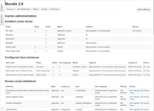 The cache configuration screen is your one stop shop for configuring caching in Moodle.