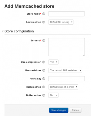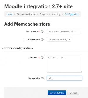 Dentro de Moodle, Usted puede configurar cuantos almacenes de caché como requiera su arquitectura. Si Usted tiene varios servidores Memcache por instancia, Usted puede crear una instancia de almacén de caché para cada una. Moodlepor defecto contiene tres instancias de almacén de caché que se usan cuando Usted no ha hecho alguna otra configuración.