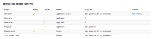 - Una instancia de almacén de memoria estática es creada, la cual se usa para todos los tipos solicitados de caché. Los datos existene n la memoria solamente durante a vida de una solicitud.