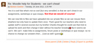 Cuando los portafolios están habilitados, las publicaciones en foros y otros datos exportables (vea debajo) tienen un ícono o enlace al lado, para exportar al portafolio.