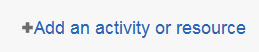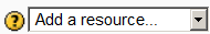 - Un maestro puede añadir recursos al activar la edición y elegir Añadir una actividad o recurso en una sección de curso. Ellos pueden entonces seleccionar un recurso desde el selector de actividades (Si el selector de actividades ha sido apagado, en su lugar aparecerá un menú desplegable). Los recursos usualmente aparecen en el área central del curso.