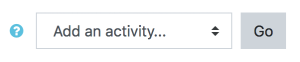 - Un maestro puede añadir actividades al activar la edición y elegir una actividad al seleccionar Añadir una actividad o recurso en una sección de curso. Ellos entonces seleccionan una actividad desde el selector de actividades. (Si el selctor de actividades ha sido desconectado, en su lugar aparecerá un menú desplegable.) Las actividades usualmente aparecen en el área central del curso.
