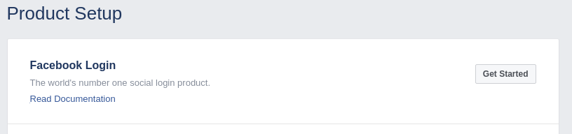 4. Haga click en el enlace '+Añadir Producto (+Add Product)' en la izquierda y después para 'Ingreso Facebook (Facebook Login)' haga click en el botón 'Comience (Get Started)'.