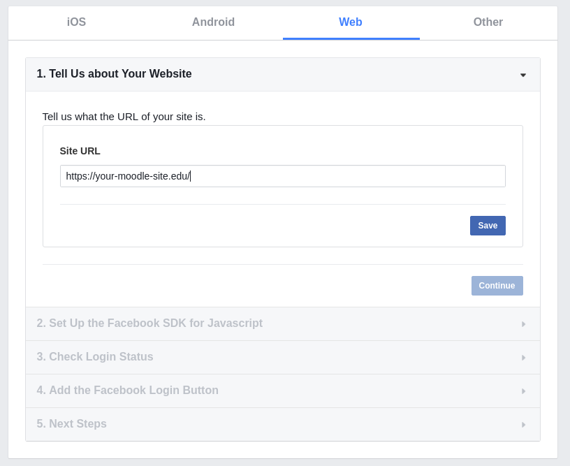 5. Hag click en Web, después ingrese la URL de su sitio y haga click en Guardar (Save).