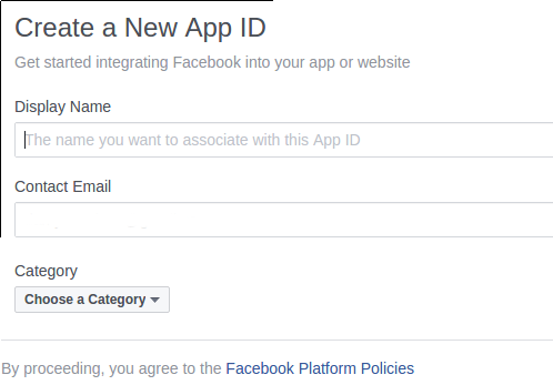 2. Ingrese un nombre y Email de contacto y haga click en el botón para 'Crear ID de App (Create App ID)'.