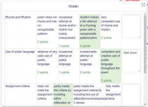 - School demo example of student view of rubric (Log in as username student/password moodle)