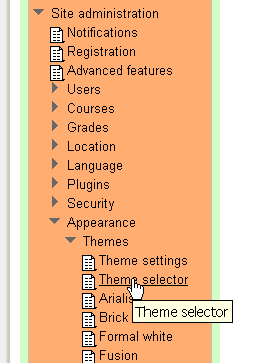 - Log in as admin and go to Administration > Site administration > Appearance > Themes > Theme Selector