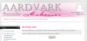 - Moodle will tell you it has been saved as the default theme