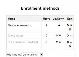 - When the teacher returns to their course, they will be able to add the "cohort sync" method in Administration > Course administration > Enrolment methods and will also see the "Enrol cohort" button in Administration > Course administration > Users > Enrolled users.