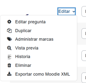 | Existe documentación diferente para varias versiones de Moodle: Esta página es acerca del banco de preguntas de Moodle 4.x. La información para Moodle 3.x está en 3.x/Banco de preguntas. La información para Moodle 1.9 está en 19/Banco de preguntas. |