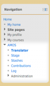 AMOS consists of several tools available via the main navigation block - Translator, Stage, Stashes, Contributions and Log.