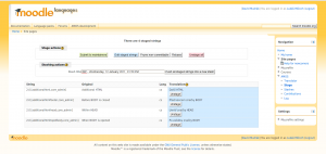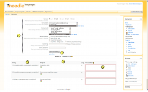 - Log - displays the log of all modifications of Moodle strings.