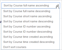 Los cursos pueden ordenarse por un administrador o Mánager desde Administración > Administración del sitio > Cursos > Gestionar cursos y categorías.
