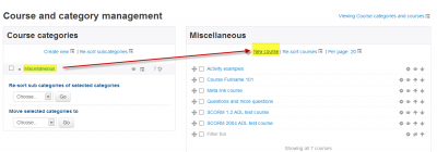 - Desde el enlace de la Administración del sitio, haga clic en Cursos > Gestionar cursos y categorías