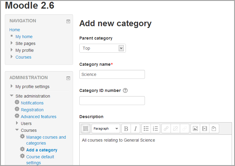 - Sometimes it might be useful to have a sub-category of a course. For example, you might have a category "Science" and wish to have sub-categories "Biology", "Chemistry" and "Physics".