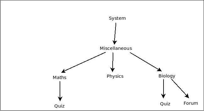 For this explanation, we will imagine we have this very simple Moodle site. There are three courses, all in the Miscellaneous category. The courses have a few activities in them.