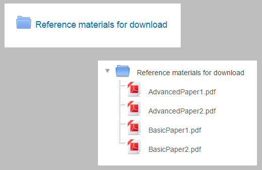- La carpeta le permite a un profesor mostrar varios archivos del curso juntos. Los archivos pueden ser de diferentes tipos y pueden ser subido de un jalón, como una carpeta comprimida ZIP que entonces es descomprimida, o pueden subirse de uno en uno a una carpeta vacía en la página del curso.