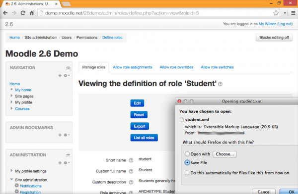 Importe y exporte definiciones de rol como archivos XML. Los nuevos roles pueden estar basados en datos existentes: